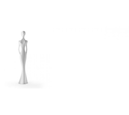 Totalmente nuova nel momento in cui poggia i piedi a terra, Penelope gioca nello stesso tempo con l’antico. Solo apparentemente algida, vive di contaminazioni e sorprese. Si ispira alle statue classiche, ornamento di ville e giardini, ma ne diluisce le forme in una stilizzazione che sa insieme di giacomettiano e di etrusco. Antropomorfa ma fuori misura (oltre due metri di altezza), calma e ironica, lineare ma sorprendente, è in realtà un concentrato di rimandi e suggestioni. Oppure, se preferite, è solo una bellissima lampada.